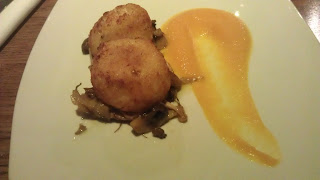 To start I had smoked haddock risotto balls. They were absolutely delicious, the outer crisp cut open to reveal perfect risotto, seasoned well and really tasty. The puree was really sweet but worked well with the smokiness of the fish.