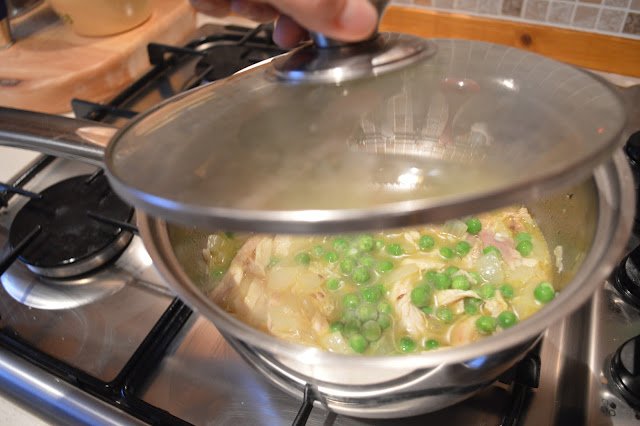 - Add the rice, peas and stock. Bring to the boil then immediately turn the heat down as low as it can be and put the lid on.