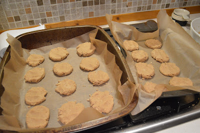 - Shape tablespoons of the dough into balls, place on the trays about 5cm apart and flatten into 4 cm rounds. Bake for 15 mins, or until lightly golden around the edges. Cool on the trays for a few mins before turning out onto wire racks to cool completely.